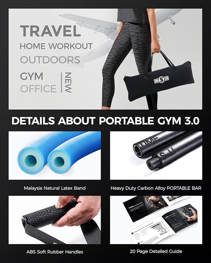 - ★PROFESSIONAL QUALITY FITNESS EQUIPMENT: High quality resistance band for heavy duty exercises. Nature latex material resistance band with 38” workout bar, 4*21” Squat bands for full body exercises. Also come with 2*door anchors, 2*foot straps, 2*ankle cuffs and 2*handles + 20 pages workout manual for your home exercise.