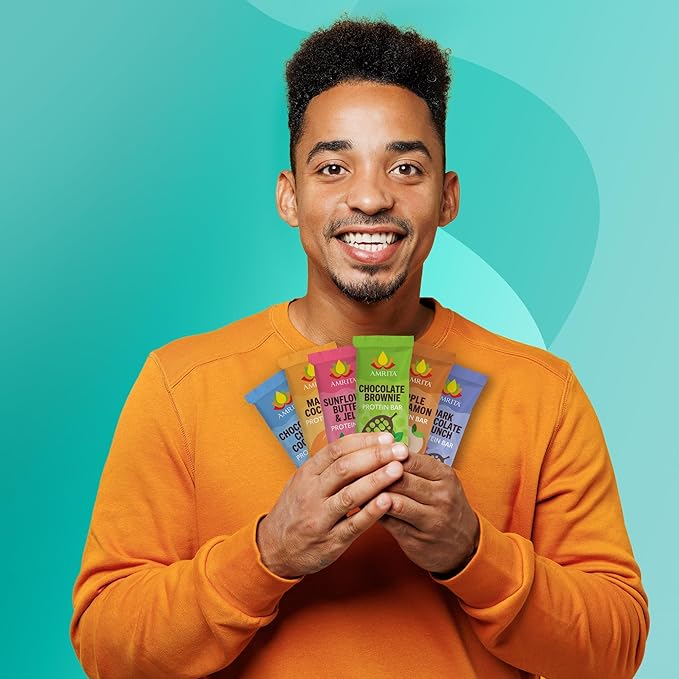 - HEALTHIER THAN THE AVERAGE BAR - Our Paleo Protein bars will help you in pre- or post-workout, great for traveling, and as a snack to keep blood sugar balanced during busy days. If you’re in the mood for a crunchy, sweet snack that’s different in texture from traditional protein bars, Amrita healthy protein bars will leave you satisfied and provide a solid dose of nutrition