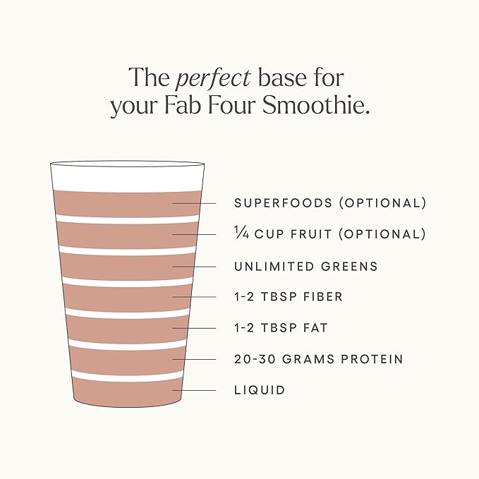 - PERFECT FOR A FAB FOUR SMOOTHIE. Incorporate this Grass-Fed Beef Protein Powder into your Fab Four Smoothies. Make a satisfying smoothie and get all the protein you need with 1 scoop of powder plus fat, fiber & greens