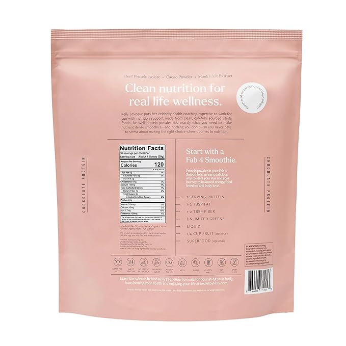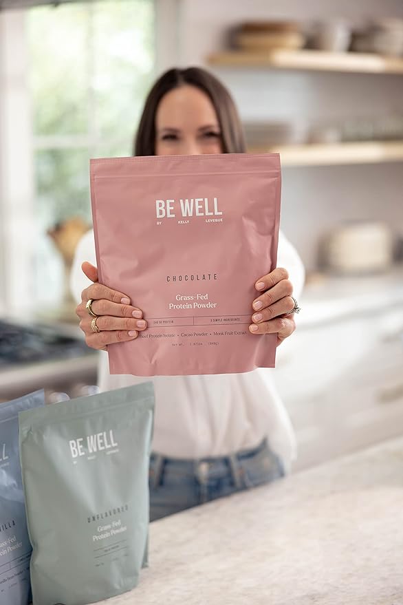 Be Well by Kelly Chocolate Grass-Fed Beef Protein Powder, 24G of Protein & 1G Net Carbs (3 Ingredients, 30 Servings) 9 Amino Acids + 3 BCAAs No Soy, No Dairy, Stevia-Free, No Sugar Added 1.87lb 849g