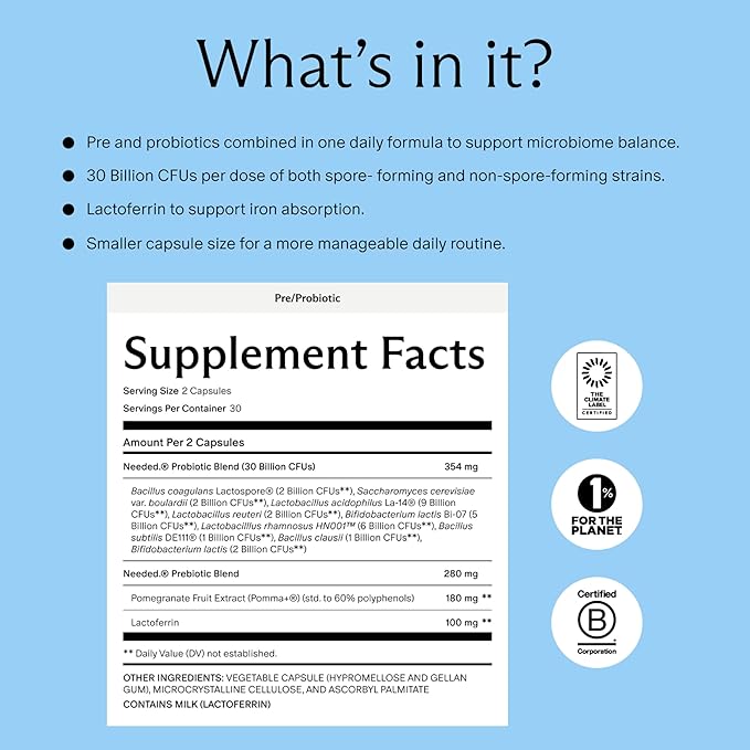 Needed. Expertly-Formulated & Tested Prebiotic & Probiotic for Prenatal, Pregnancy, Breastfeeding, & Postpartum | Balance Mood, Boost Immunity, Healthy Microbiome for Mother & Baby | 60 Capsules