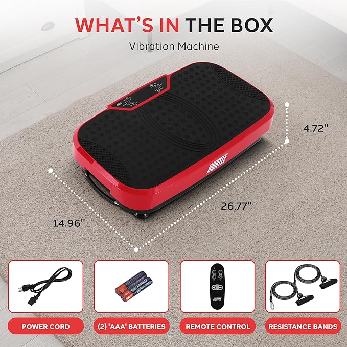 Hurtle Fitness Vibration Platform Machine - Home Gym Whole Body Shaker Exercise Machine Workout Trainer Fast Weight Loss w/Resistance Bands Easy Carry Wheel Remote Adjustable Speed