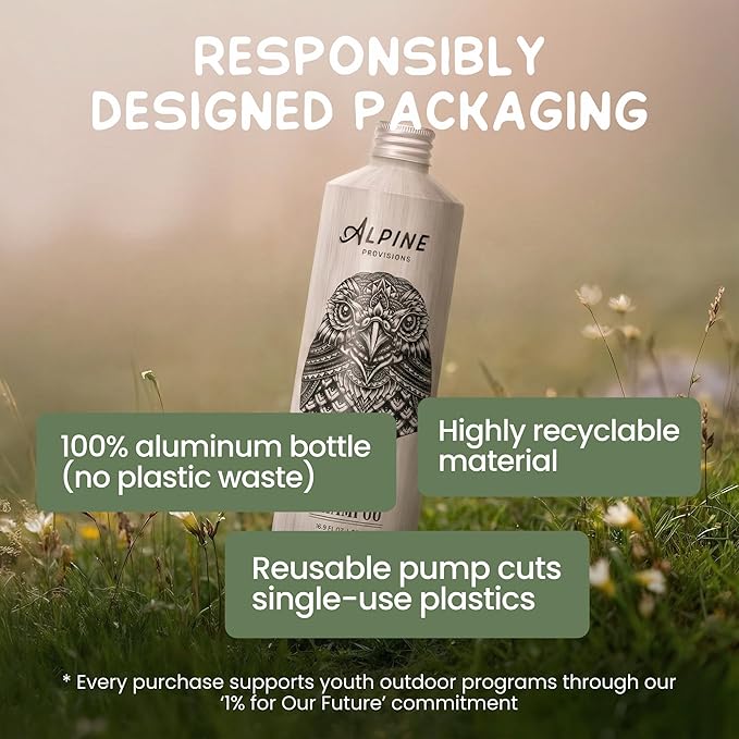 Alpine Provisions Natural & Organic Shampoo with Cedar & Sandalwood – Plant-Based Shampoo for Men & Women with Aloe Vera, Jojoba & Essential Oils – Sulfate-Free, Vegan, Hydrating – 16.9 fl oz
