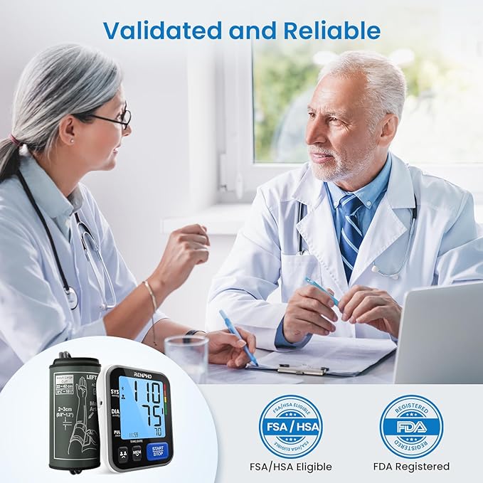 RENPHO Smart Blood Pressure Monitor for Home Use, Bluetooth BP Machine with Wide Range Cuff for Large Size Adult Arms, Muti-Users, Data Storage, Family Supplies