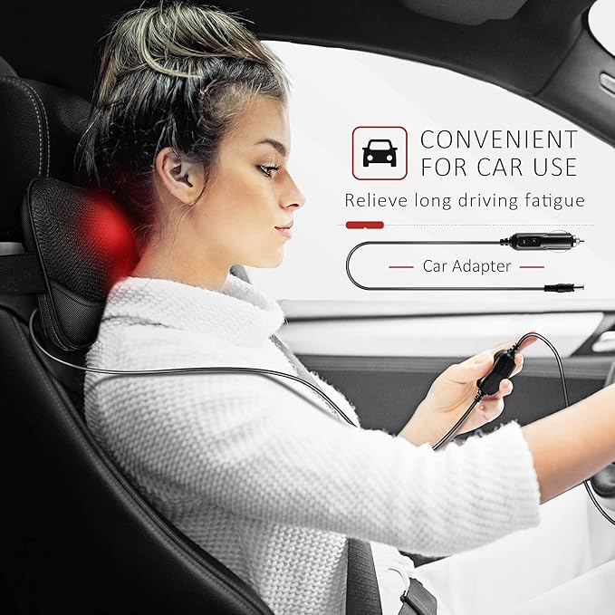- PORTABLE BACK MASSAGER: Neck and back massager comes with an regular adapter(110-240V) and car adapter(12V). you can enjoy a professional massage at home, in the office or car. 4 massage ball automatically changes direction every minute to relax your muscles more comprehensively. Adjustable strap to secure the massage pillow to your favored chair so you can easily enjoy a relaxing healthy massage wherever you are
