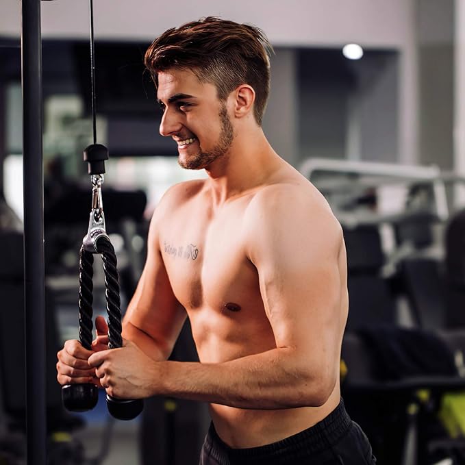 - ✅Combo includes: 1x V-Handle (Double D Handle), 1x V-Shaped Bar, 1x Straight Rotating Bar, 1x Press Down Tricep Rope, 4x Snap Hooks. These home gym accessories for men and women are designed to fit most cable systems