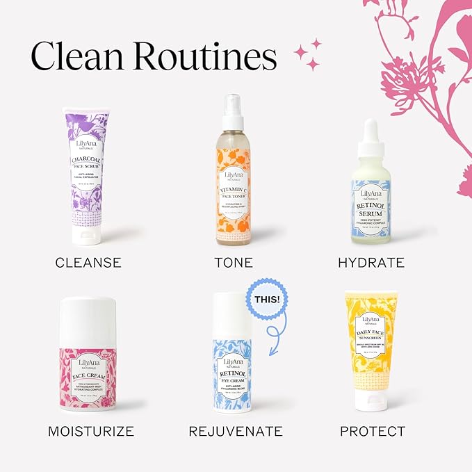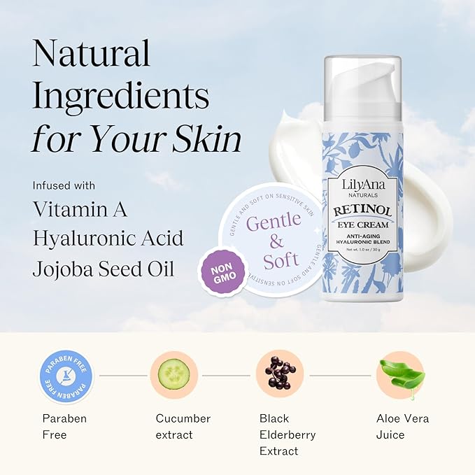 LilyAna Naturals Eye Cream - Eye Cream for Dark Circles and Puffiness, Under Eye Cream, Anti Aging Eye Cream Reduce Fine Lines and Wrinkles (1.0 Ounce, Retinol)