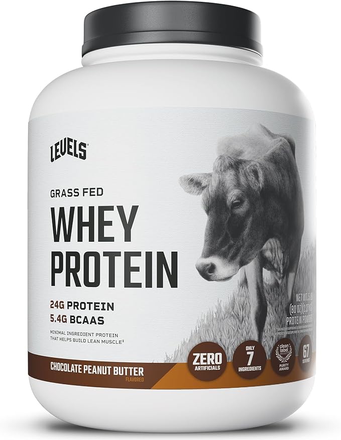 Levels Grass Fed Whey Protein Powder, No Artificials, 24G of Protein, Chocolate Peanut Butter, 5LB