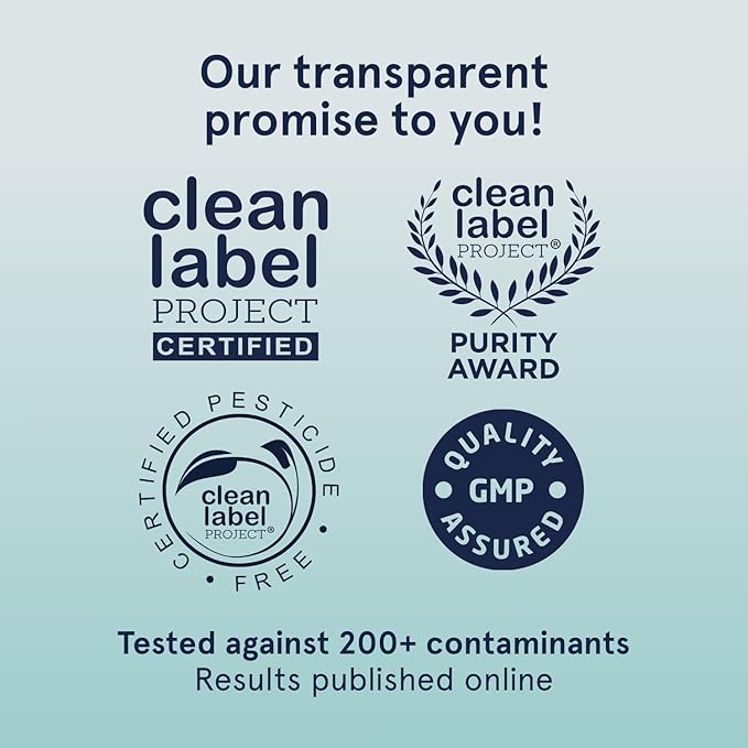 - PURITY AWARD AND FULL TRANSPARENCY: Every batch of every product is tested for purity and potency by Clean Label Project and they publish all test results for everyone to see.