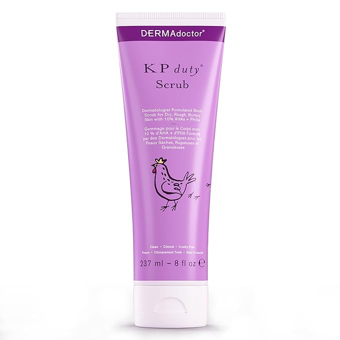 DERMAdoctor KP Duty Body Scrub Dermatologist Formulated Exfoliant for Keratosis Pilaris and Dry, Rough, Bumpy Skin with 10% AHAs + PHAs, 8 fl oz