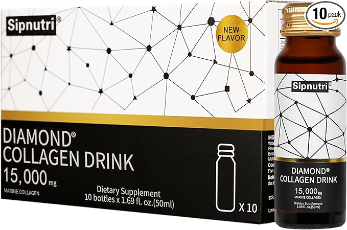 Diamond Liquid Collagen Drink, 15000 mg Hydrolyzed Marine Collagen Peptides with Vitamin C, Pomegranate, Healthy Hair Skin Nails Joints Bones Support, 50 ml x 10 Bottles