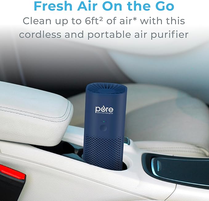 Pure Enrichment PureZone Mini Portable Air Purifier - Cordless True HEPA Filter Cleans Air & Eliminates 99.97% of Dust, Odors, & Allergens Close to You - Cars, School, & Office (Blue)