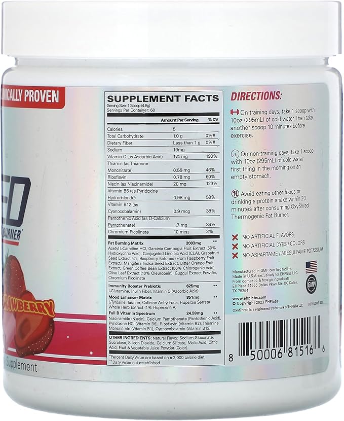 EHP Labs OxyShred Pre Workout Powder - Preworkout Powder with L Glutamine & Acetyl L Carnitine, Energy Boost Drink - Cosmic Blast, 60 Servings
