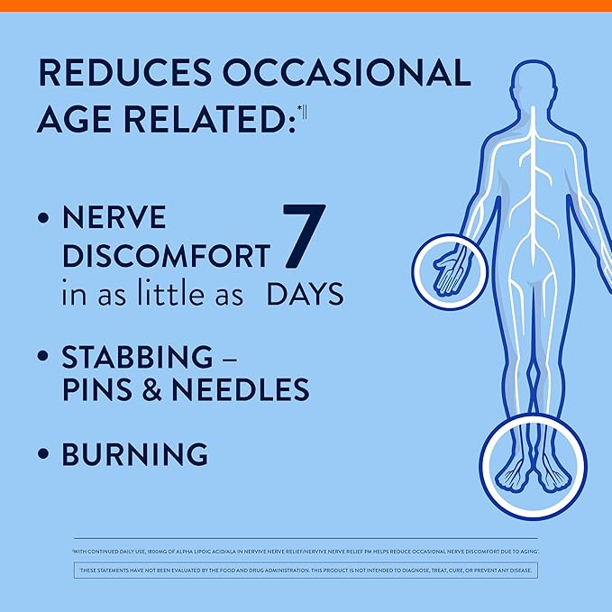 - FEEL THE DIFFERENCE WITH LESS OCCASIONAL NERVE DISCOMFORT*: The clinically studied amount of Alpha Lipoic Acid in NERVIVE NERVE RELIEF may reduce occasional nerve discomfort‖ by 50%, on average, after 4 weeks*.