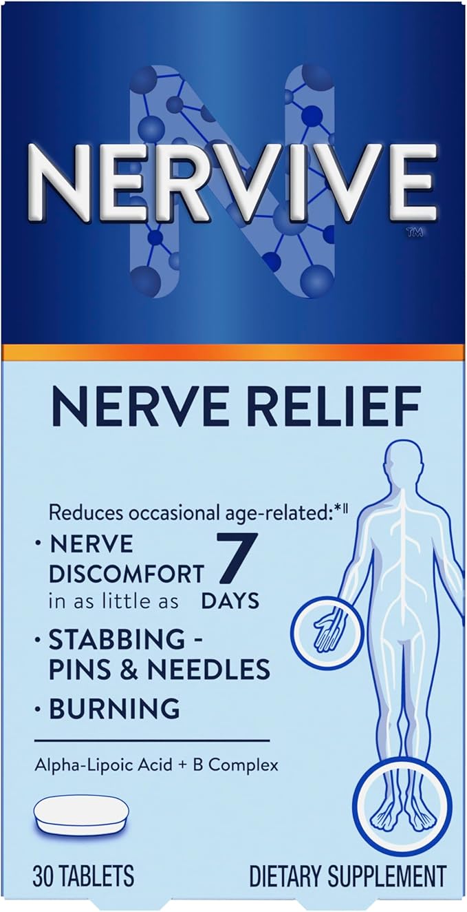 Nervive Nerve Relief, Reduces Occasional Nerve Discomfort in as Little as 7 Days, Stabbing/Pins and Needles, Burning in Hands and Feet*†, Alpha Lipoic Acid, B Vitamins, Turmeric, Ginger, 30 Tablets
