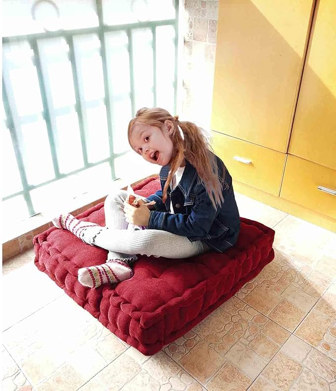 Verpert Floor Pillow 25x25 Inch, Square Meditation Cushion Floor Seating for Adults, Oversized Tufted seat Cushion Reading Nook for Kids, Yoga Meditation Pillow for Sitting on Floor Maroon