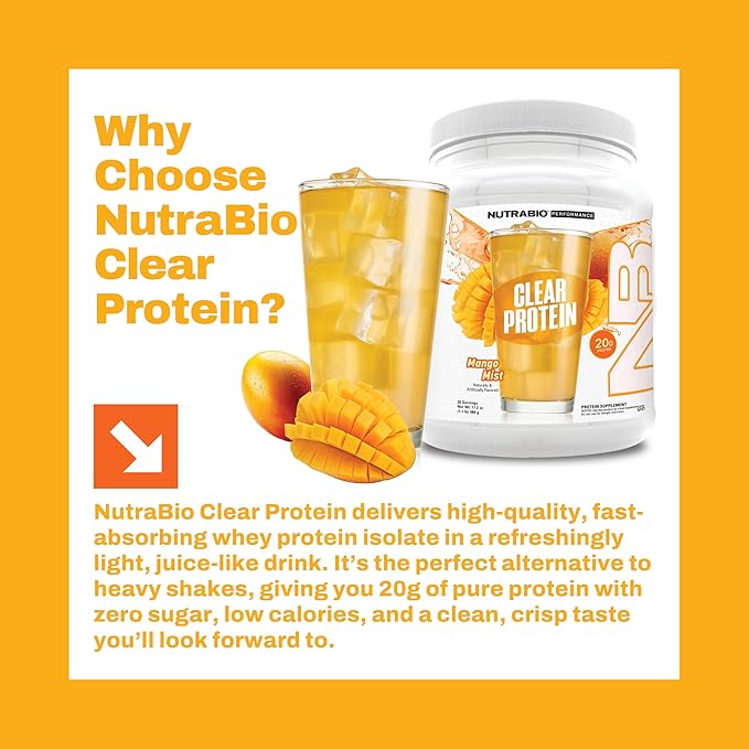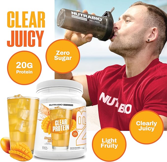 - CLEAN LIGHT & REFRESHINGLY FRUITY: Experience the clear choice with NutraBio Clear Whey Protein Isolate—a deliciously fruity, light clear protein drink that feels more like a refreshing juice than a typical thick and milky protein shake.
