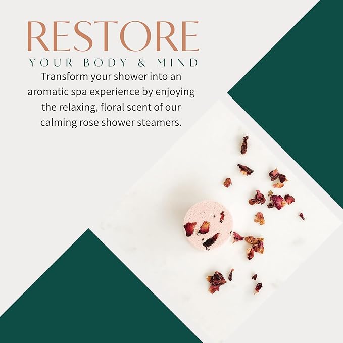 - RESTORE YOUR BODY & MIND: Invite balance into your bathroom with these grounding aromatherapy shower steamers. Transform your shower into an aromatic spa experience by enjoying the relaxing, floral scent of our calming and grounding signature Rose shower steamers. Our rose oil blend has a warm, deeply floral, rich, and slightly spicy scent which makes for the perfect indulgence after a long day.