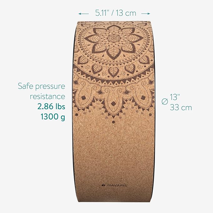 - UNIQUE DESIGN: Featuring a unique pattern on the cork, the Navaris yoga wheel can be admired whether out at the studio or doing yoga at home.