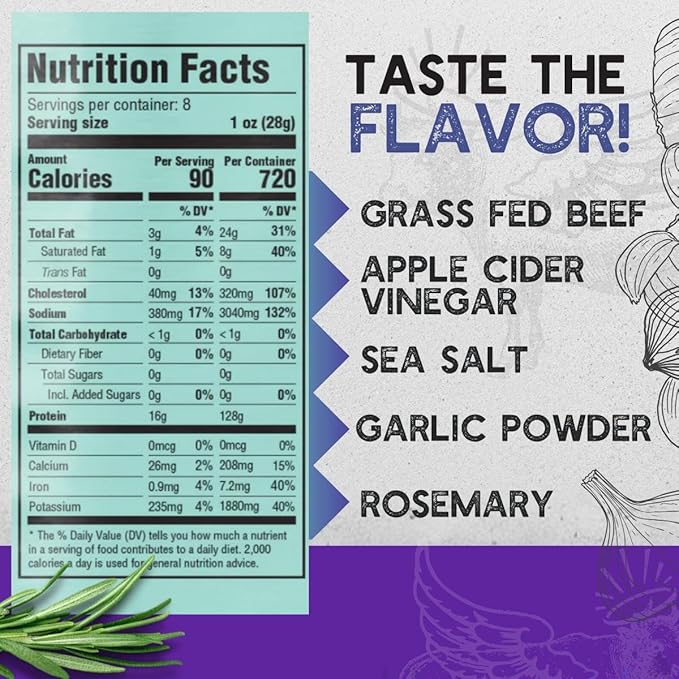 - NUTRITIOUS - With 240g of protein per bag and 0g carbs, Brooklyn Biltong is a healthy, natural snack. Unlike most processed jerky, it's made with grass-fed beef, and it's always sugar free, nitrate free, and gluten free.