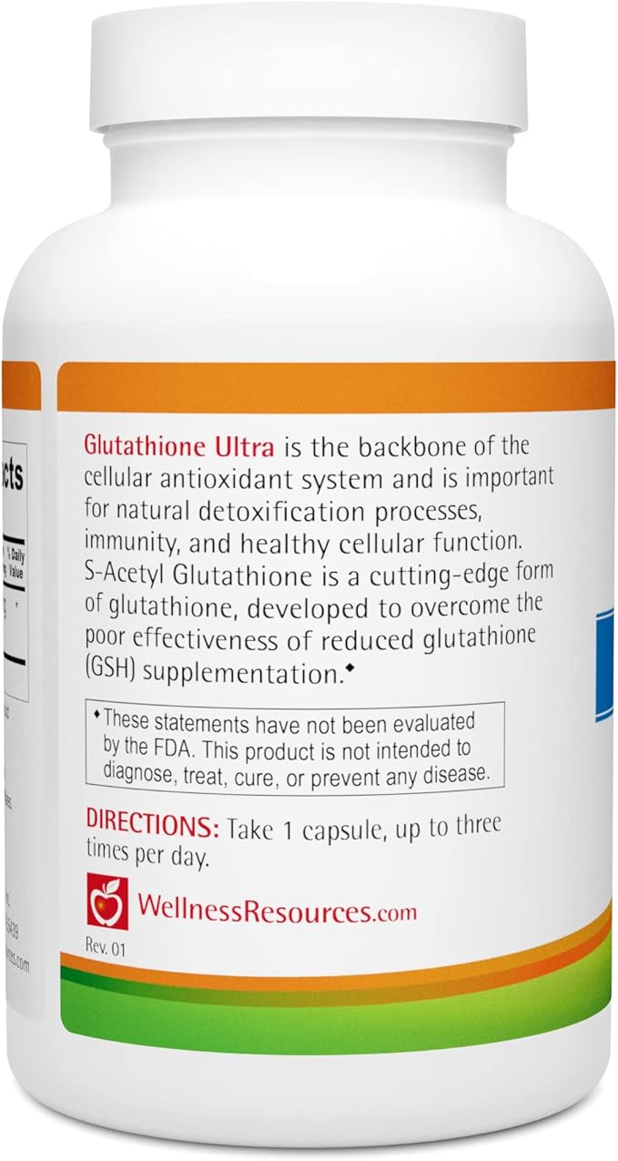 Wellness Resources Glutathione Ultra Supplement - Bioavailable S-Acetyl L-Glutathione (SAG) - Antioxidant, Detox & Cellular Health Immune Support - High Absorption, Non-GMO, Gluten-Free, 90 Capsules
