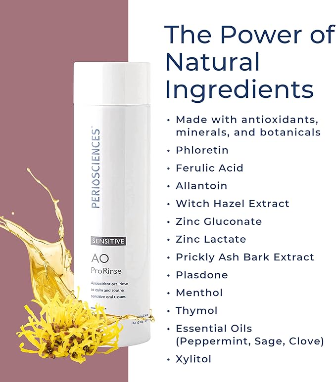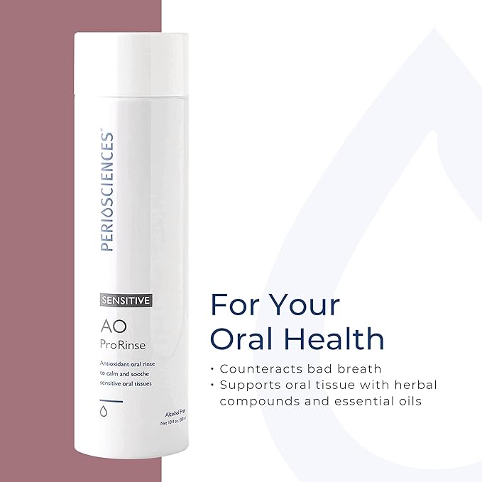 - For your oral health - PerioSciences AO ProRinse Sensitive Oral Rinse counteracts bad breath and soothes oral tissue with herbal compounds and essential oils. This antioxidant-based sensitivity mouthwash also freshens breath, supports your saliva’s natural defenses and helps with extreme oral sensations.