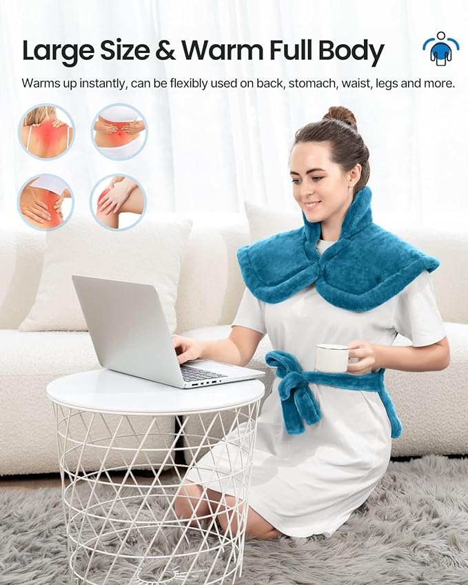 - Large Size & Pain Relief: The size of this electric heating pad is 24"x33". It can fully covering your neck and shoulders and back. In addition, it can also be flexibly applied to the arms, waist, abdomen, legs, and more. Edge weighted heating pad can provides soothing heat therapy to relieve sore muscles and muscle spasm. The heating pad for back pain relief makes a great get well gifts or relaxing gifts for women.