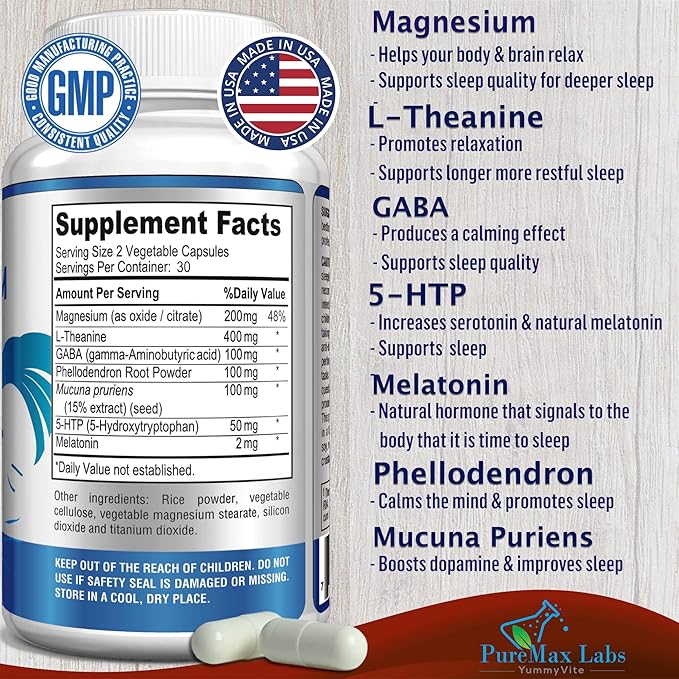 - PureMax Labs Natural Calm Sleep Formula is manufactured in the USA in an FDA inspected, Good Manufacturing Practice Certified facility from premium ingredients and is 3rd party lab tested.