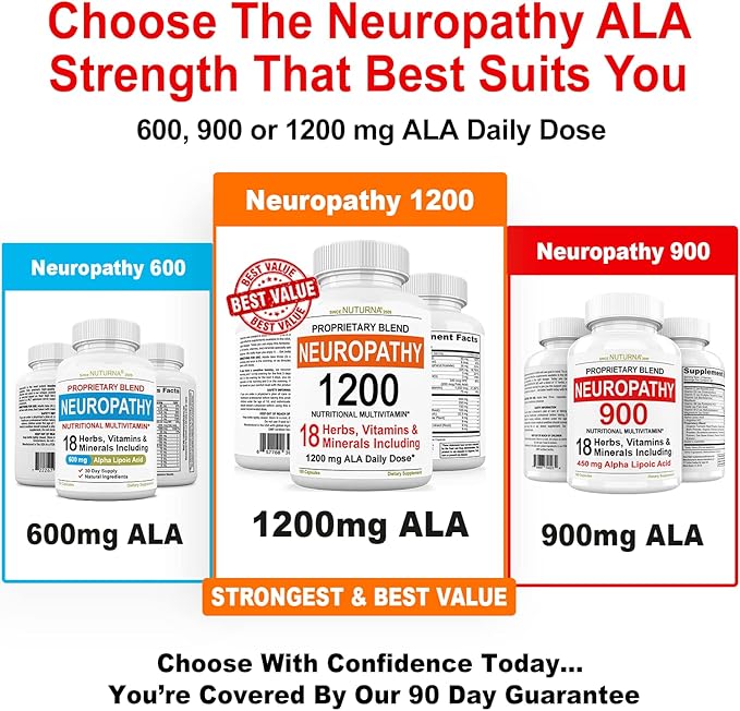 - ✅ 18 PREMIUM INGREDIENT BLEND For Nerve Soothing Comfort... Including Herbs, Vitamins and Minerals with a MAXIMUM STRENGTH 1200 mg Alpha Lipoic Acid Daily Dose... Feed Your Body The Necessary Building Blocks and Discover a More Comfortable and Active Life with Our Maximum Strength 1200 mg ALA Nerve Support...