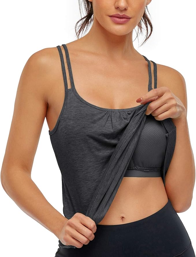 - √Built in Bra: Designed for low impact. Shelf bra tank tops built in removable pads gives a comfort feel, provides light support and coverage. You can also take off the pads and wear a sports bra under for high impact.