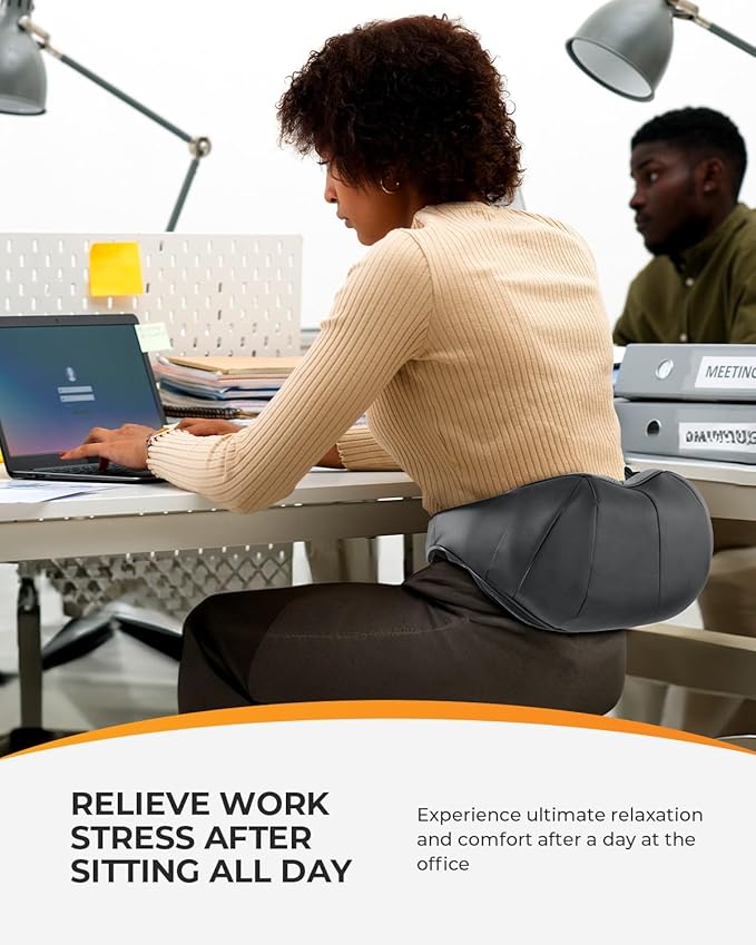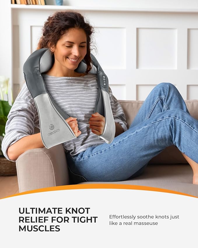 - [Cool Relaxing Gifts idea]: Immerse yourself in a world of tranquility with the gentle warmth of our neck back massager with heat. The shiatsu neck massager with heat soothes away stress, melts tension. It can also relax your shoulders and neck before going to bed, improving your sleep quality.