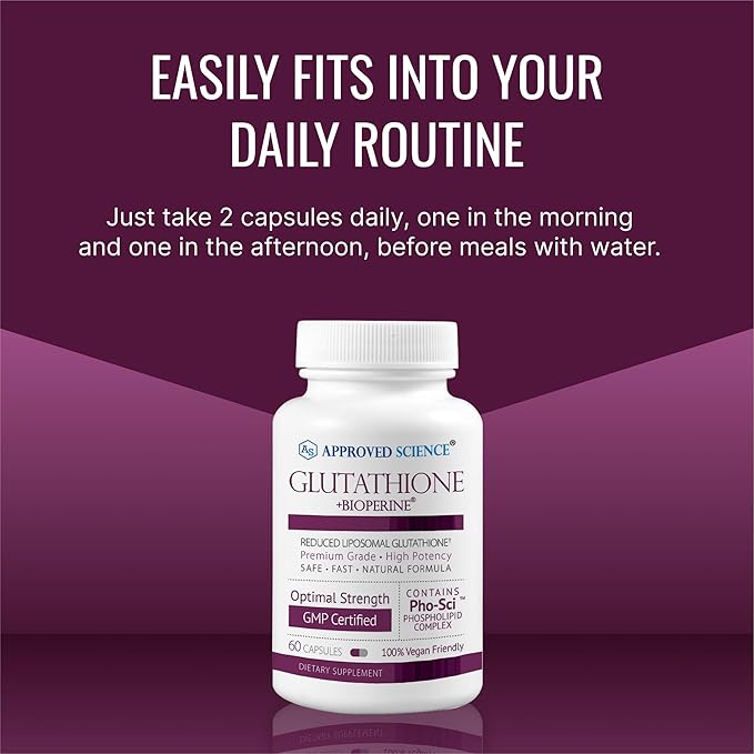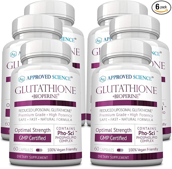 Approved Science® Glutathione - Glutathione 500 mg - Phospholipid Complex, Vitamin C, Bioperine - Top Antioxidant to Help Neutralize Free Radical - Vegan Friendly - 60 Capsules per Bottle - 6 Bottles
