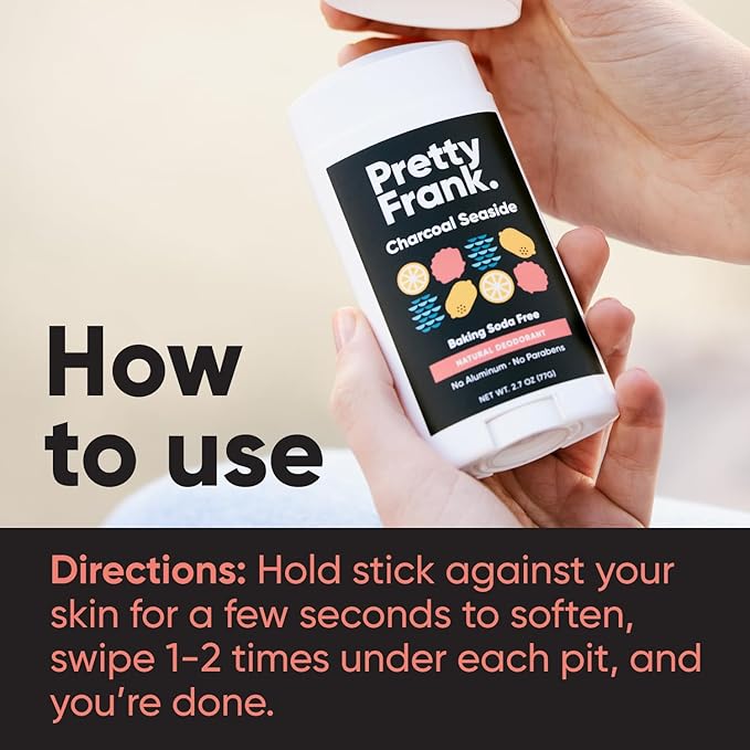 - CHARCOAL SEASIDE - An invigorating blend of Lavender, Palmarosa, Lemon, and Juniper Berry from essential oils. Pretty Frank natural deodorant is easy to use with just 1-2 swipes and pure enough to put anywhere. Use it on your pits, bits, feet - wherever you need odor protection.