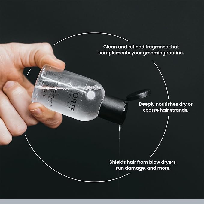 - HYDRATING HAIR SERUM FOR MEN - The Hydrating Argan Oil by Forte Series is a hair serum designed for daily use. Argan oil has been used for centuries to promote shiny, silky hair. If you regularly style your hair using heat styling tools like straightening irons, curling irons, or blow-dryers, this argan oil for hair works as a pre-styler, priming your hair for heat exposure.