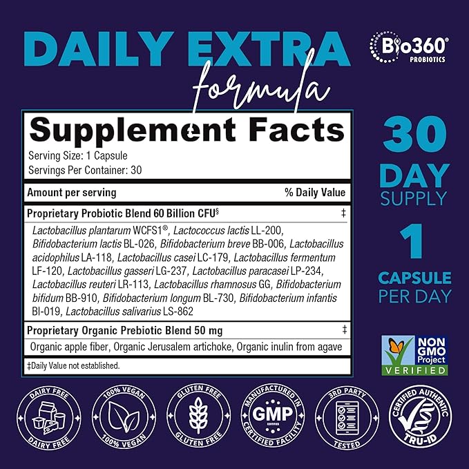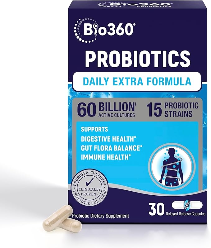 - IMMUNITY SUPPORT: Bio360 Probiotic offers essential support for your immune system, featuring clinically proven strains like Lactobacillus salivarius. A powerful probiotic like this helps promote your body's natural defenses, providing a strong barrier against harmful pathogens and promoting overall health.