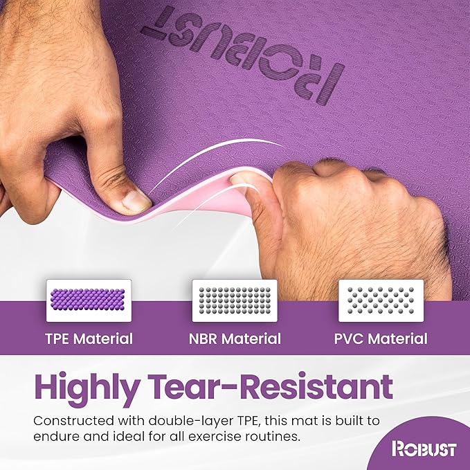 - 3. Eco-Friendly TPE Material: Crafted from eco-conscious TPE material, this yoga mat is devoid of PVC, latex, and harmful chemicals, offering a safe and sustainable choice for both you and the planet.