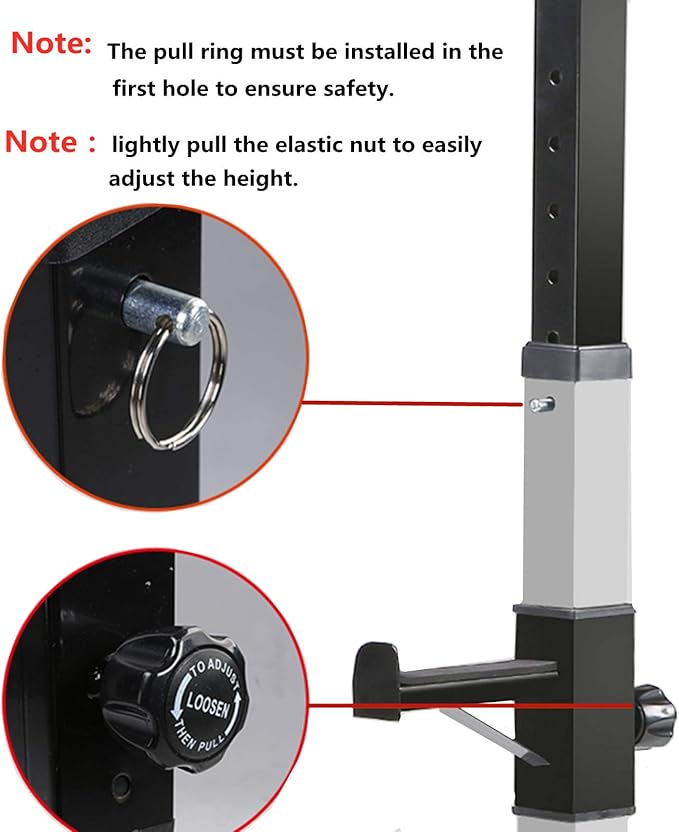 - 9 HEIGHT ADJUSTMENT AND 10 WIDTH ADJUSTMENT: Adjustable barbell rack for various height requirements, stand height range of 35.5"-55.5", width range of 28.5"-44.5".Can easily meet the needs of the whole family movement.