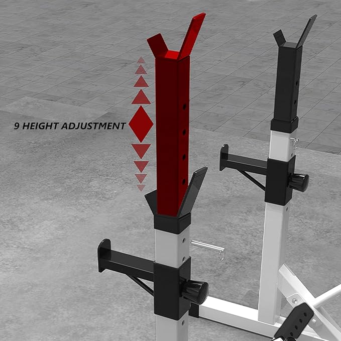 - MULTIFUNCTIONAL FITNESS FUNCTION: Equipped with 2 barbell storage rack design allows you to easily carry out a variety of exercises, including bench press, shoulder press, squat, dips, elevated lifts, etc.