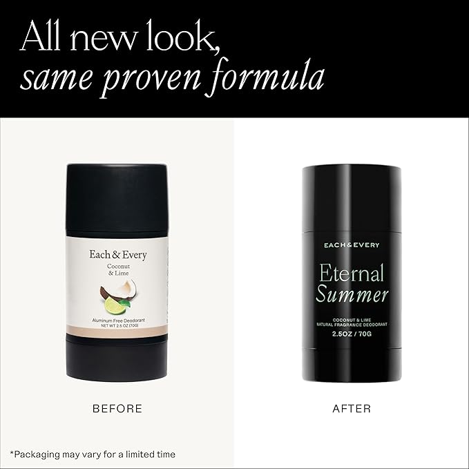 Each & Every Aluminum Free Deodorant for Men & Women, Coconut & Lime - All Natural Deodorant for Sensitive Skin, EWG Verified - Clean, Baking Soda-Free, Plant-Based Fragrance - 2.5oz, 2 Pack