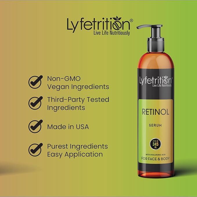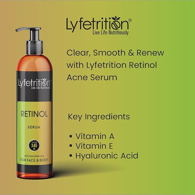 Retinol Acne Serum by Lyfetrition, Infused with Hyaluronic Acid and Vitamin C, Pomegranate & Green Tea,Face toner, Reduce Wrinkles, Pores and Fine Lines, Moisturize & Supple Skin, (12 FL oz)