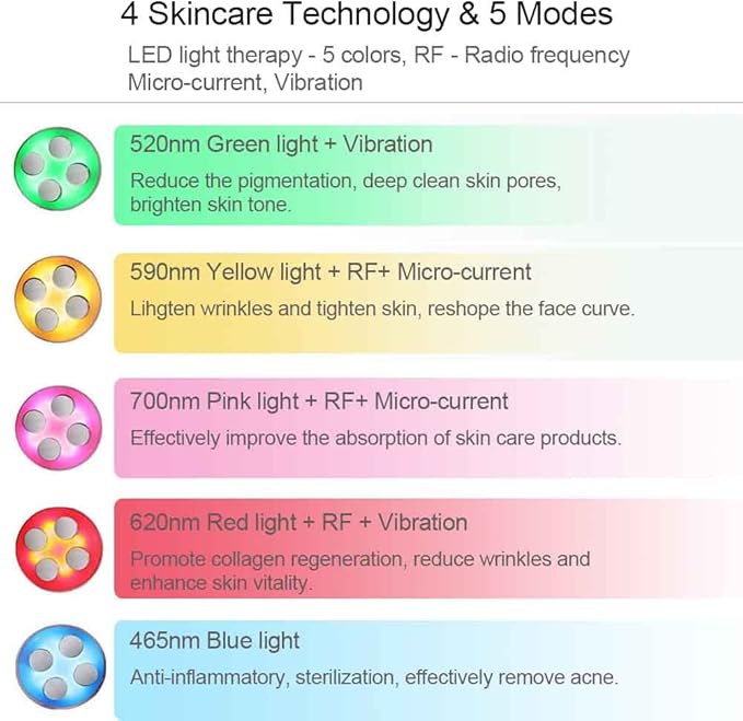 - 5 in 1 Multifunction: Multiple beauty technologies, built in advanced LED Light Therapy, High Frequency/Microcurrent to prevent wrinkles, reduce acne, accelerate skin regeneration, making skin younger.