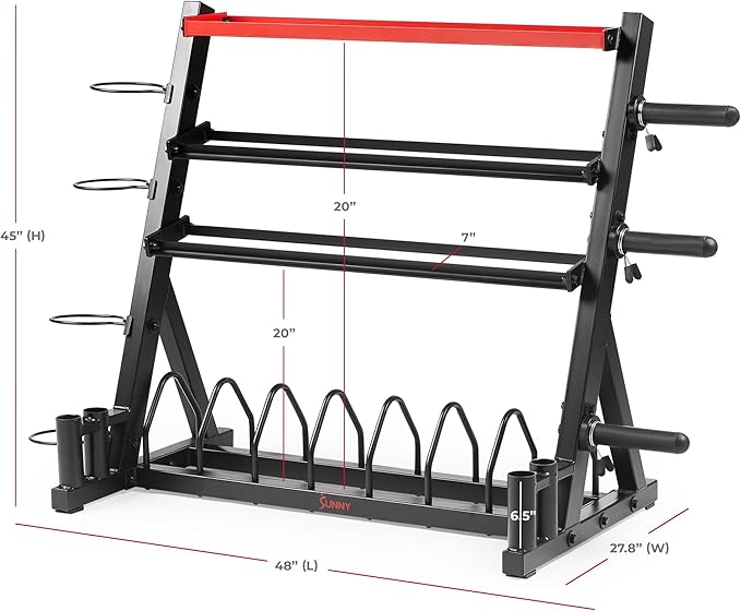 - SOLID DESIGN: Featuring an incredible combined max weight of nearly 2,645 LB, this all-in-one can store your entire strength training collection and more. Wear-resistant coating enhances durability and reduces likelihood of scratches.