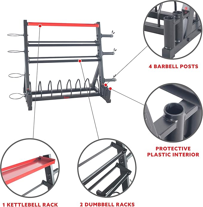- MULTI-STORAGE: The ultimate strength training free weight storage rack, this All-In-One is a must have for home gym owners who are serious about making gains.
