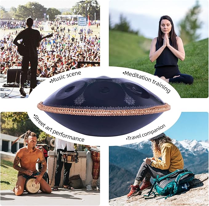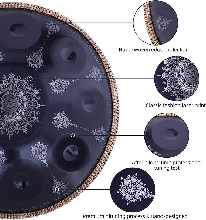 - 3. Precious Excellent:As the manufacturer of handpan,it's our honor to provide premium hand drum for handpan lovers,we have also been working hard.As we all know,handpan is a very precious musical instrument,and it's also a very beautiful gift with a wonderful memory Meaning,very suitable for Christmas,Valentine's Day