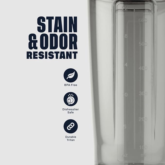 BlenderBottle Shaker Bottle Pro Series Perfect for Protein Shakes and Pre Workout, 24-Ounce, Smoke Grey