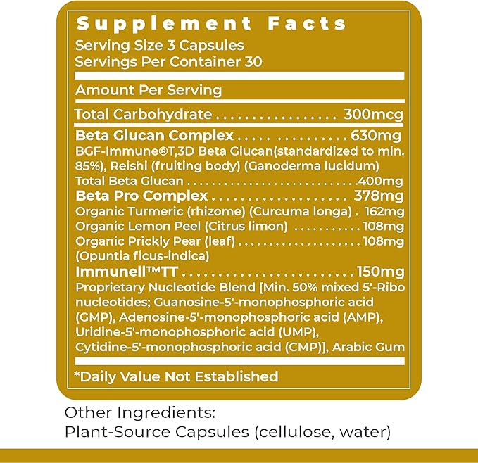 - PREMIUM INGREDIENTS: Combining high-quality yeast-derived beta glucan with the benefits of reishi, turmeric, and prickly pear, this supplement provides a rich phytochemical profile for robust health