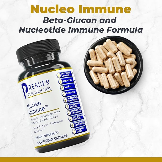 - IMMUNE SUPPORT: Premier Research Labs Nucleo Immune is a potent beta-glucan supplement, enhancing immune function with a unique blend of turmeric, prickly pear, & lemon peel for comprehensive support
