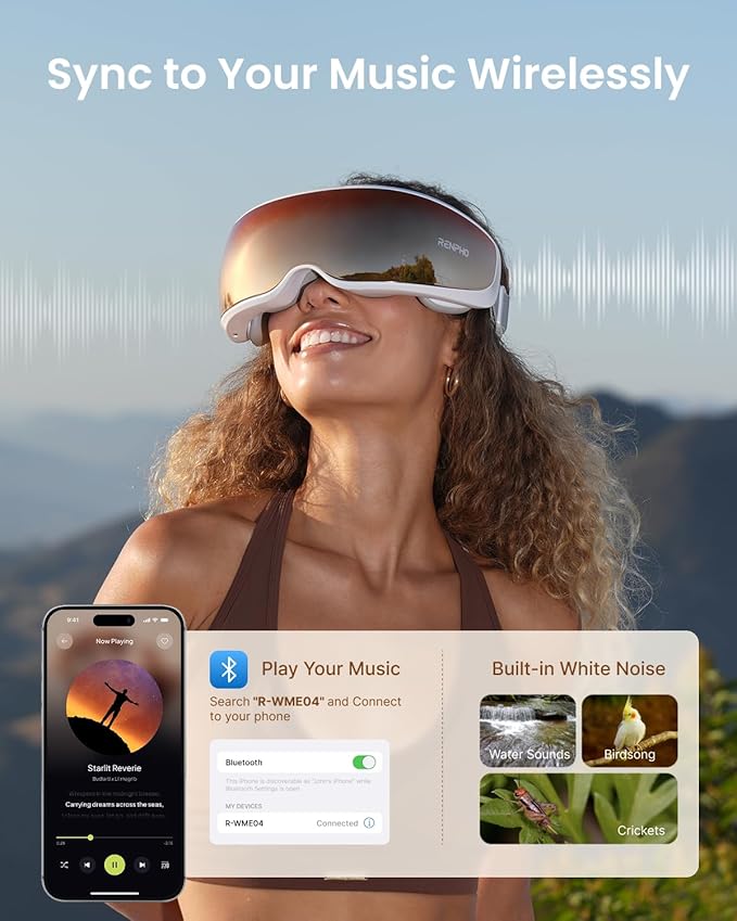 - Immersive Wireless Music: Escape into relaxation with soothing pre-set music tracks or connect your phone to stream your favorite playlist. The bluetooth sleep mask helps boost your mood and improve your sleep quality. Note: The device's operation noise is ≤45 dB