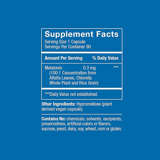 - World’s First Plant-Based Melatonin Supplement: Made from chlorella, alfalfa and rice—similar in structure to what your body naturally produces.*