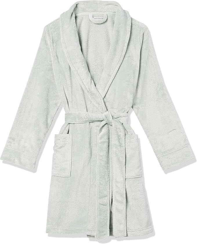 - MID-LENGTH PLUSH ROBE: This super soft robe provides the ultimate comfort when drinking your early morning coffee or winding down after a day at work. Style back to Amazon Essential's Slippers to keep your feet snuggled and warm.